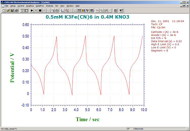 The Model 1100B series power potentiostat/galvanostat is designed for electrochemical applications that require relatively large current and high compliance voltage, such as battery studies, corrosion, electrolysis, and electroplating. The current range is ±2 A, and the compliance voltage is ±25 V. The instrument contains a high speed digital function generator, a fast data acquisition system, filters for current signals, iR compensation circuitry, a potentiostat, and a galvanostat (Model 1140B). The potential control range is ±10 V. The function generator can update at a 10 MHz rate, and the maximum sampling rate is 1 MHz at 16-bit resolution. The 1100B series is capable of measuring current down to tens of picoamperes. The steady state current of a 10 μm disk electrode can be readily measured without external adapters. The instrument provides very wide dynamic range on experimental time scales. For instance, the scan rate in cyclic voltammetry can be up to 1000 V/s with a 0.1 mV potential increment or 5000 V/s with a 1 mV potential increment. The potentiostat/galvanostat uses a 4-electrode configuration, allowing it to be used for liquid/liquid interface measurements and eliminating the effect of the contact resistance of connectors and relays for high current measurements. The data acquisition systems allow an external input signal (such as spectroscopy signals to be recorded simultaneously with electrochemical data).